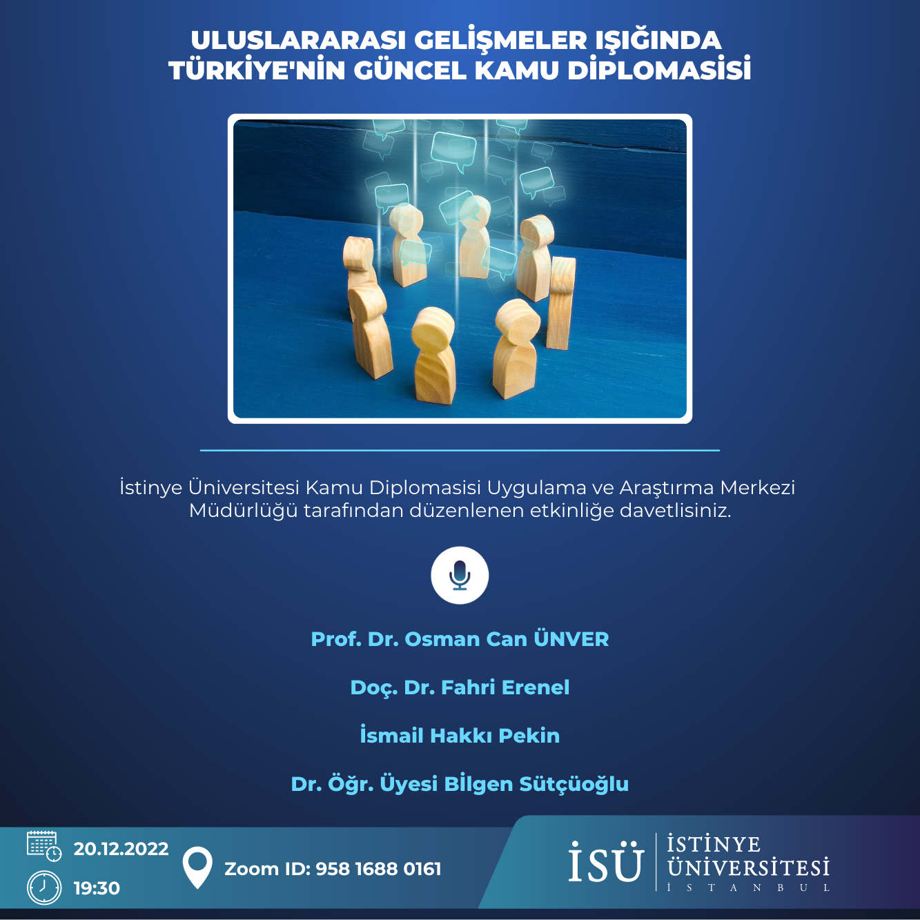 You are invited to the online event to be held by Istinye University Public Diplomacy Application and Research Center Directorate on Tuesday, December 20, at 19.30.